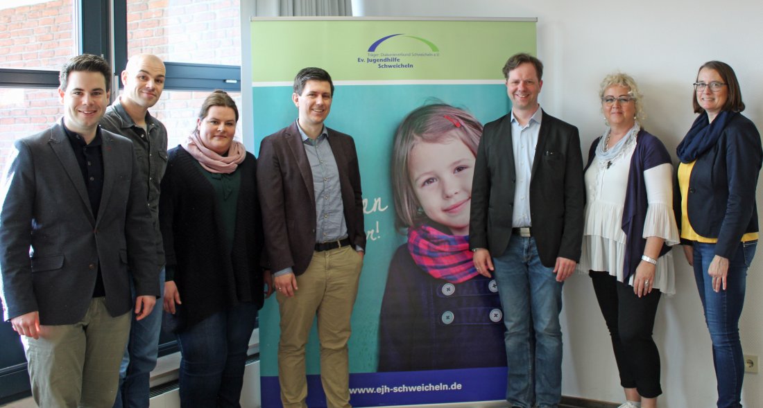 Bereit für die zweite Runde: (v.l.) Chris Dimitrakopoulos und Benjamin Niksch, Jugendhilfe Schweicheln, Anja Eckstein und Daniel Salow, Jobcenter HF, Olaf Craney, Agentur für Arbeit HF, Miriam Kreinjobst, EJHS, Petra Biernot, Regionalagentur-OWL